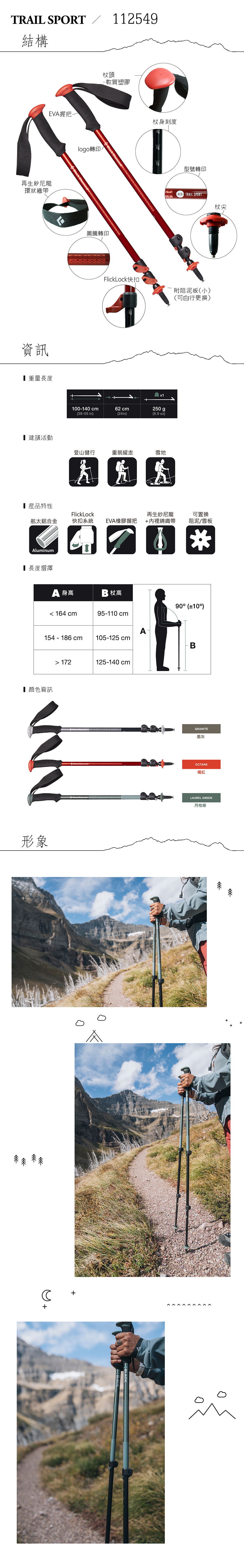 Black Diamond TRAIL SPORT 3 快扣三節式登山杖 快扣鋁登山杖 價格單位為 : 一對 (無販售單支)
