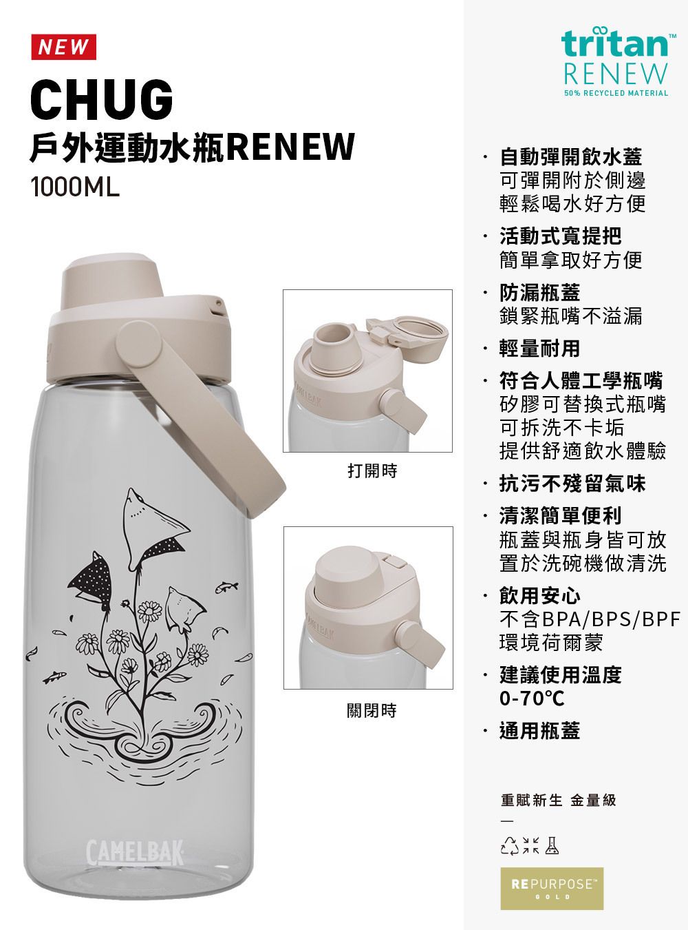 CamelBak 離島記憶-飛翔綻放 1000ml Chug 戶外運動水瓶RENEW 晶透白 CBSMUPB1002 [HappyOutdoor]