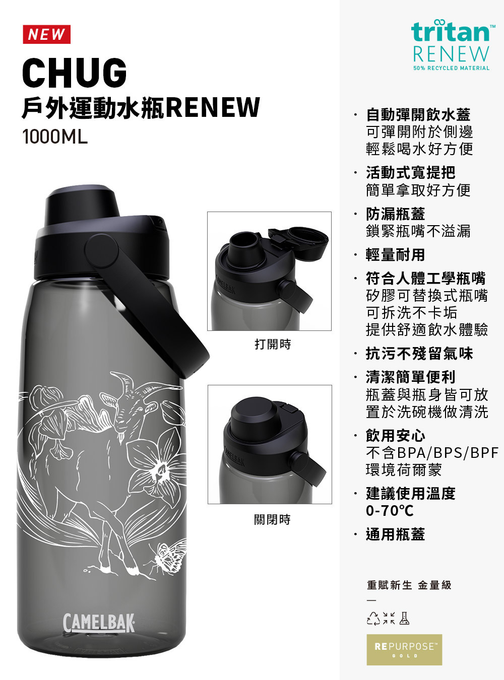 CamelBak 離島記憶-蘭嶼山羊 1000ml Chug 戶外運動水瓶RENEW 炭黑 CBSMUPB1003 [HappyOutdoor]