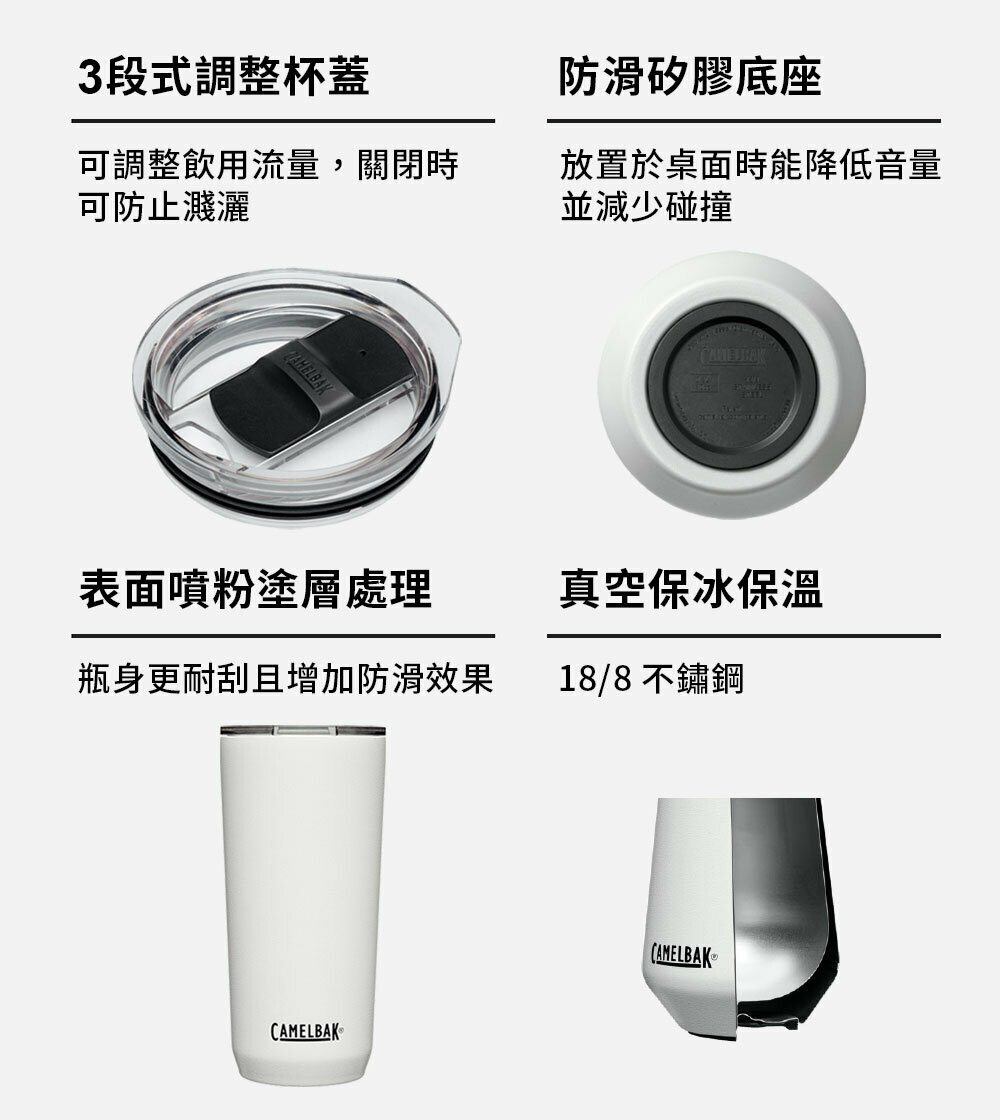3段式調整杯蓋 – 可調整飲用流量,關閉時可防止濺灑