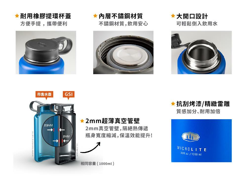 GSI 新款 Microlite 1000ml (提環) 輕量不鏽鋼真空保溫瓶 (多色選擇) [HappyOutdoor]