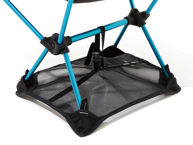 - 將椅腳套進地布四個角落口袋,中心繩環扣緊椅子支架,地布將負載均勻分佈在地面上,增加了椅子的穩定性。