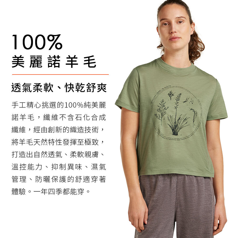 icebreaker 女 Tech Lite 圓領短袖短版上衣(亞麻物語)-150