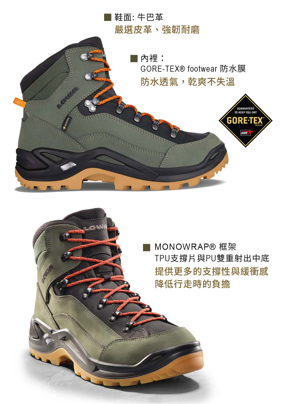 LOWA RENEGADE GTX MID 男款 中筒多功能健走鞋 防水登山鞋 LW310945-7120 森林綠/橘 [HappyOutdoor]