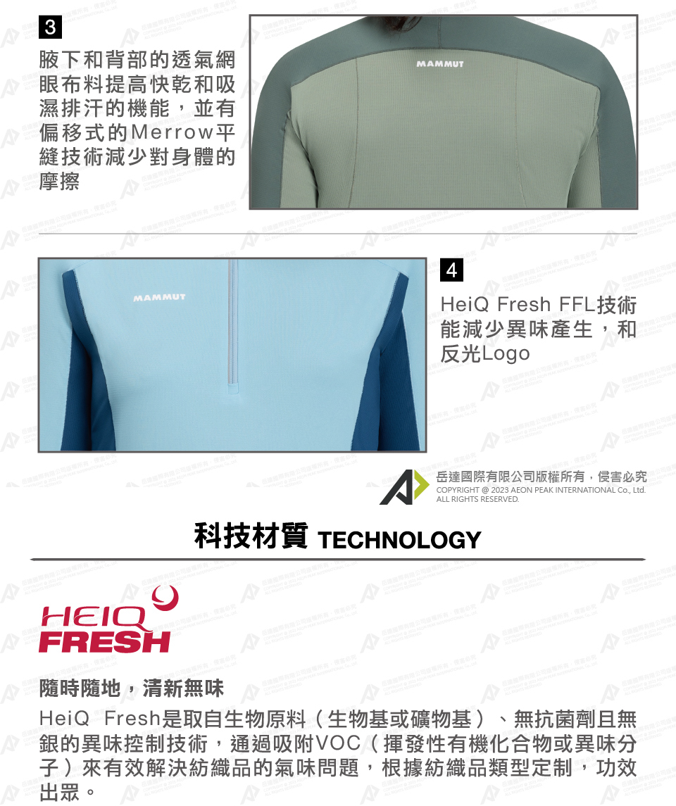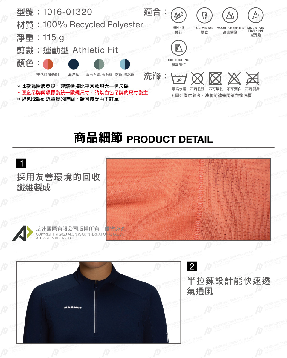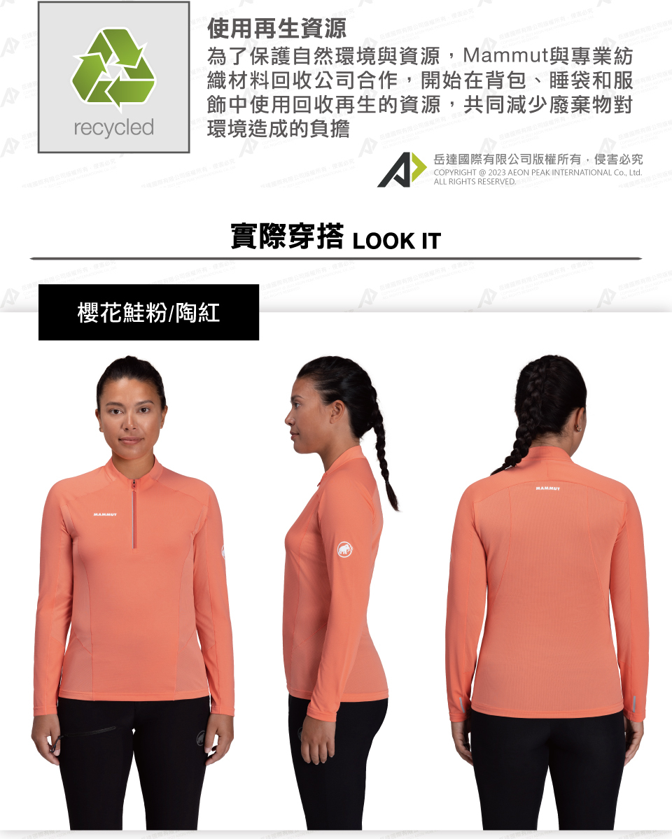 Mammut 長毛象 Aenergy FL Half Zip LS AF 女款 抗菌半拉鍊長袖排汗衣 半門襟排汗衣 #1016-01320-6429 星系紫