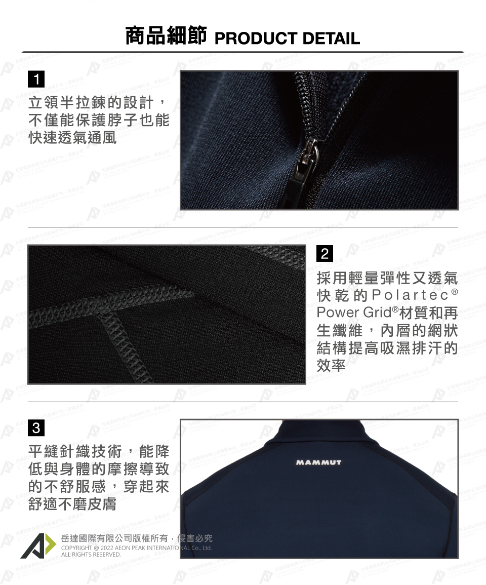 Mammut 長毛象 Aenergy ML Half Zip Pull AF Men 男款 保暖立領半拉鍊長袖排汗衣