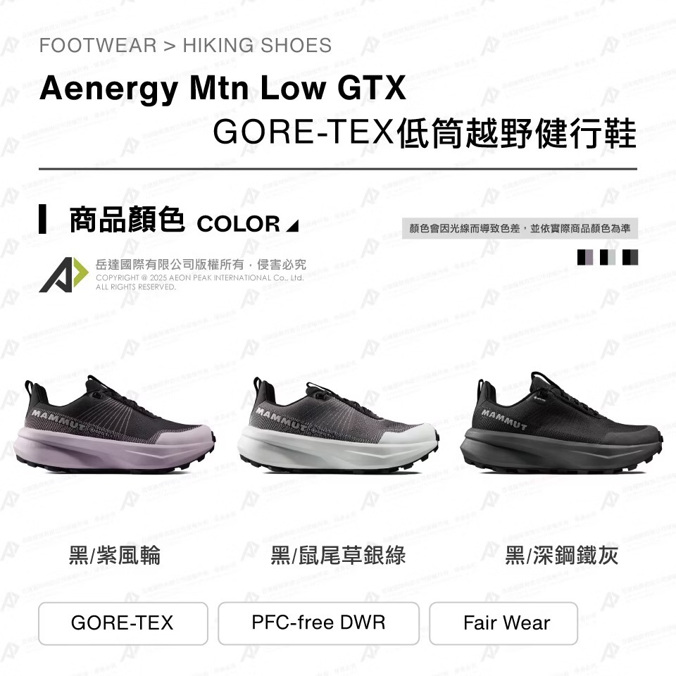 Mammut 長毛象 Aenergy Mtn Low GTX Women 女款 防水低筒越野健行鞋 黑/鼠尾草銀綠 #3030-05310-9237 [HappyOutdoor]