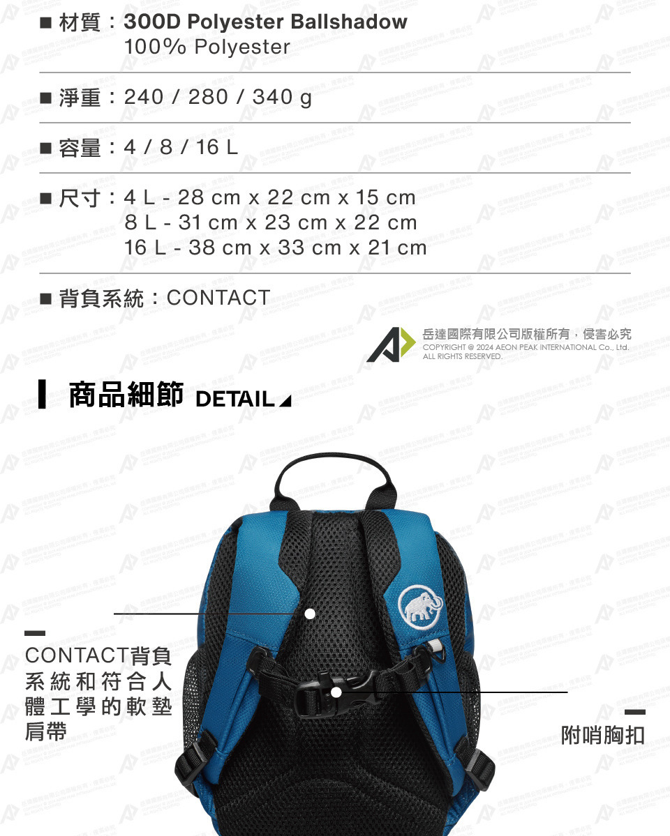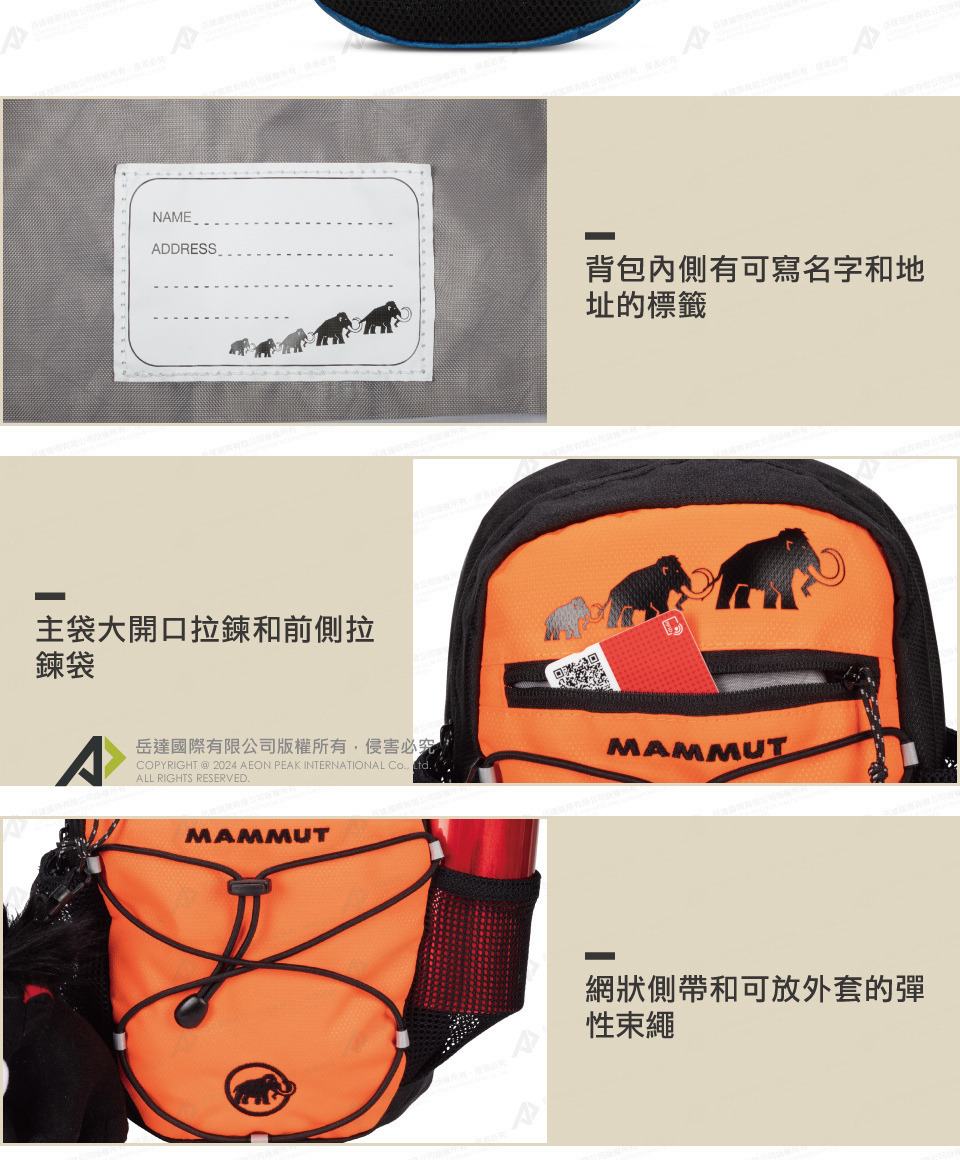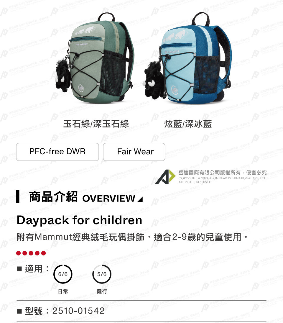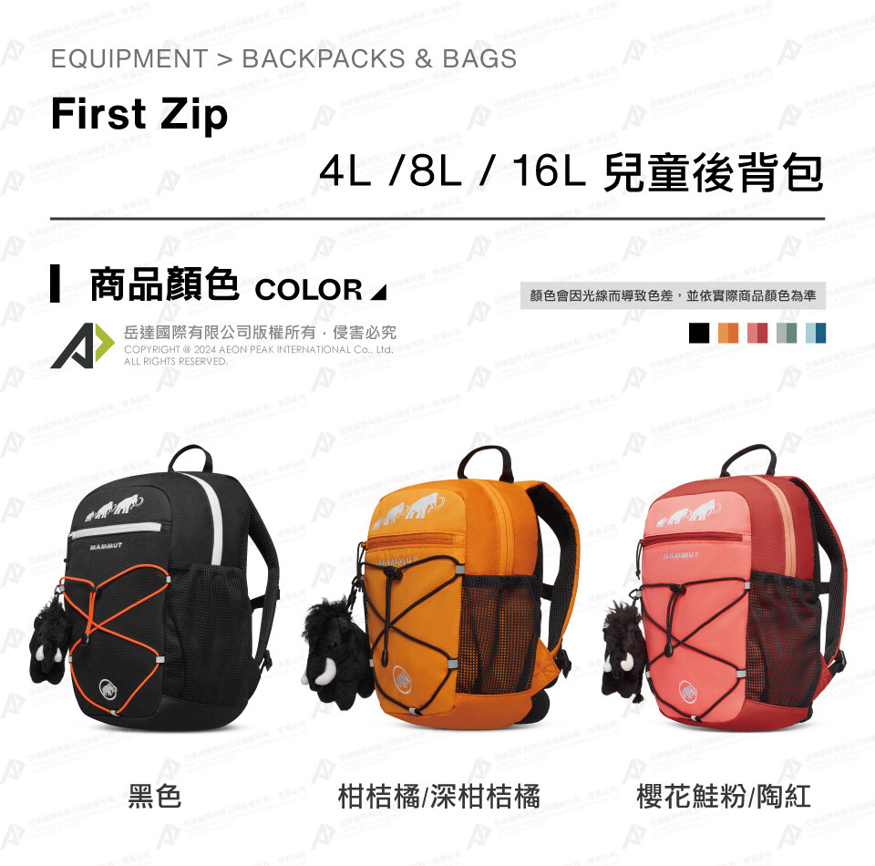 專為兒童設計的First Zip,附有Mammut龐克版經典絨毛玩偶掛飾,適合2-9歲的兒童使用。