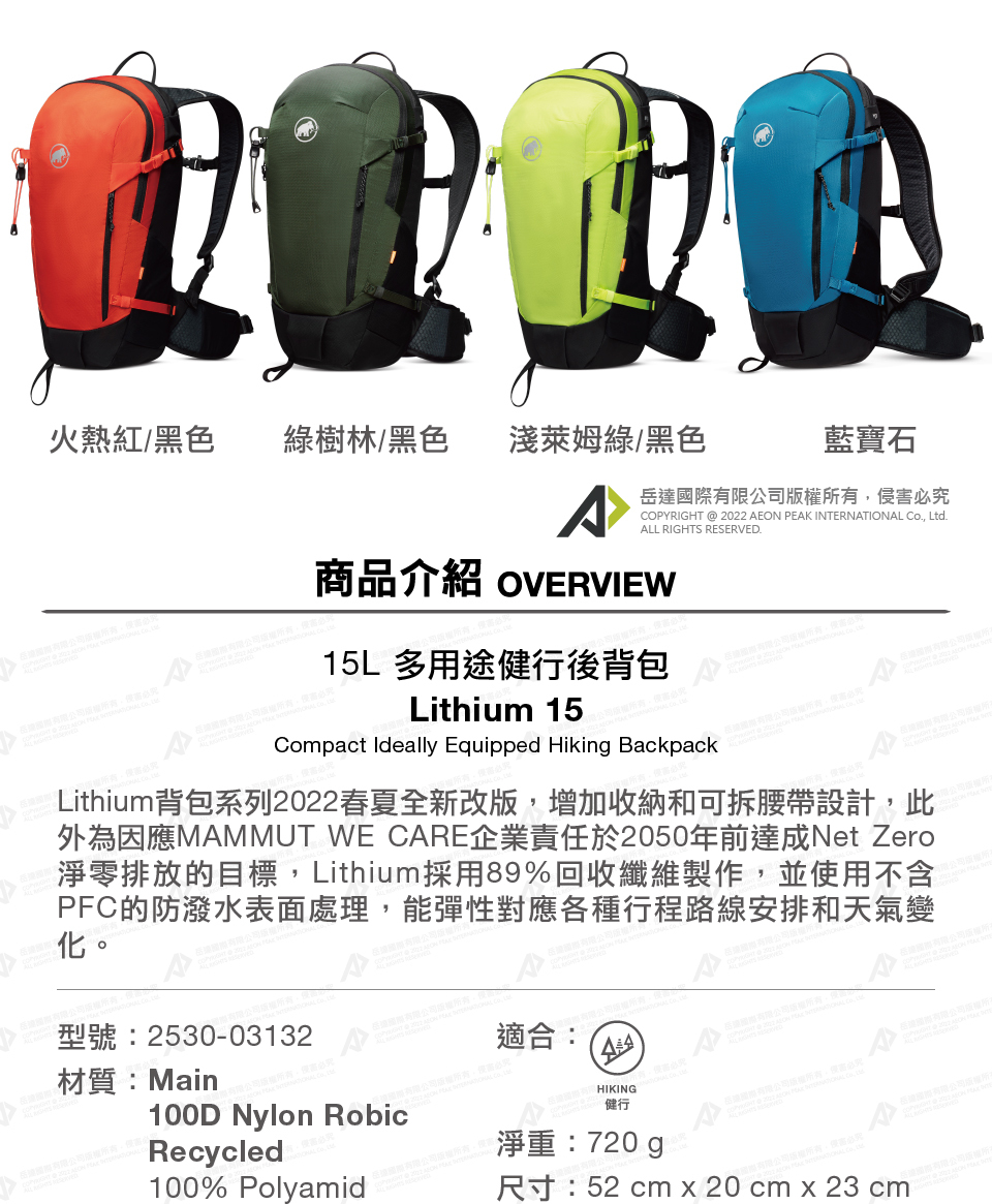 Lithium系列背包,2022春夏全新改版,增加收納和可拆腰帶設計,彈性對應各種行程路線安排!