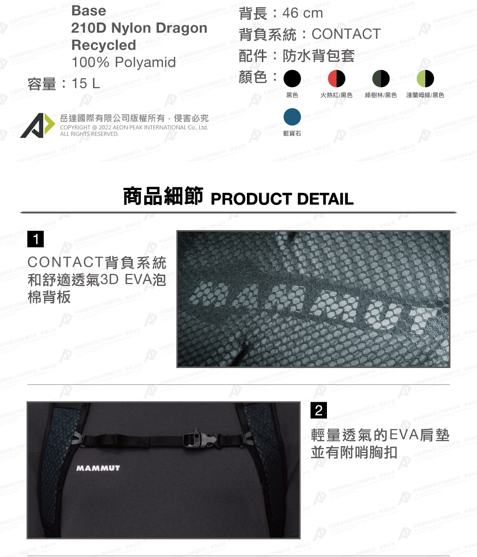 Mammut 長毛象 Lithium 15 男款 多用途健行後背包 15L #2530-00301 (4色) [HappyOutdoor]