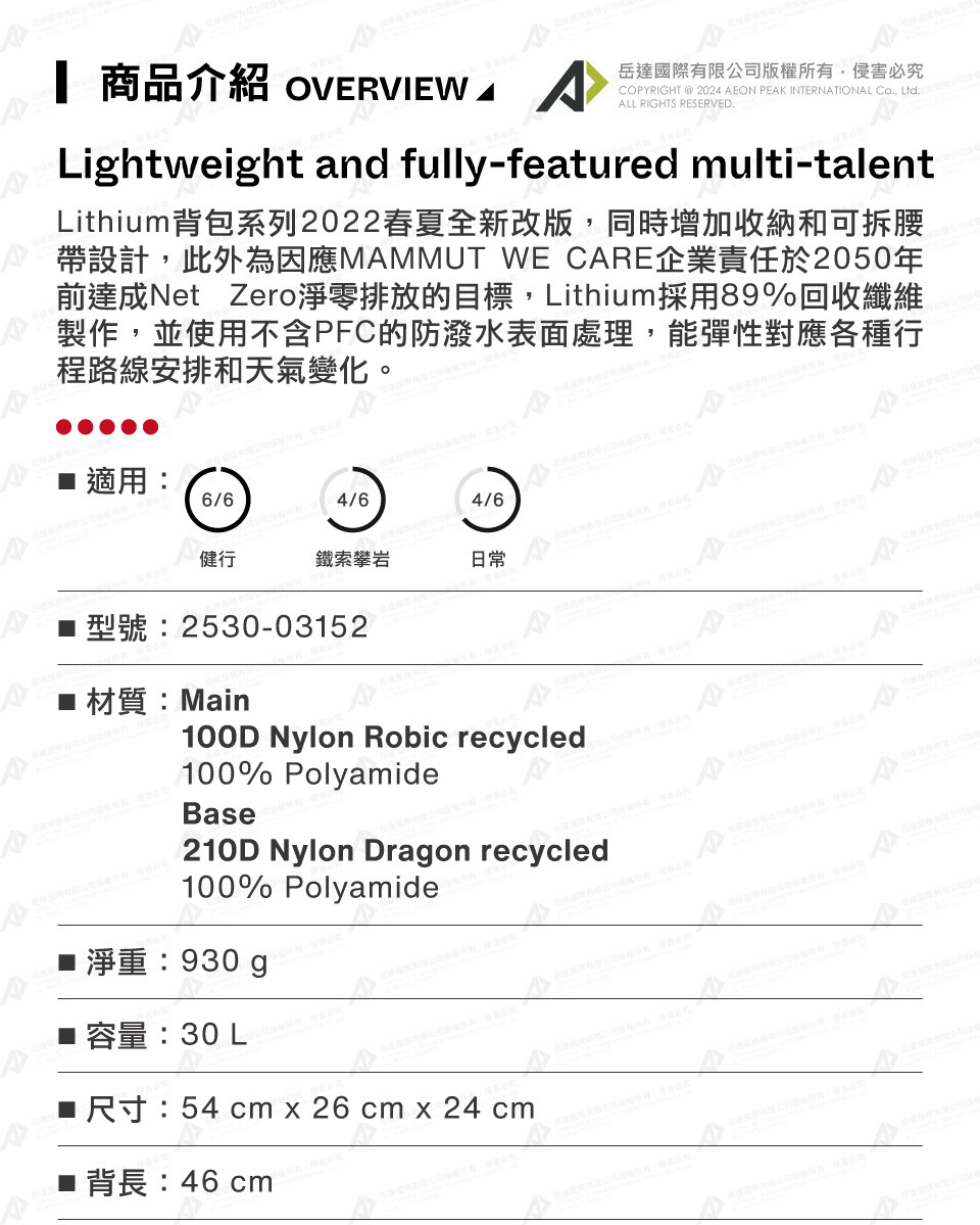 Lithium系列背包,2022春夏全新改版,增加收納和可拆腰帶設計,彈性對應各種行程路線安排!