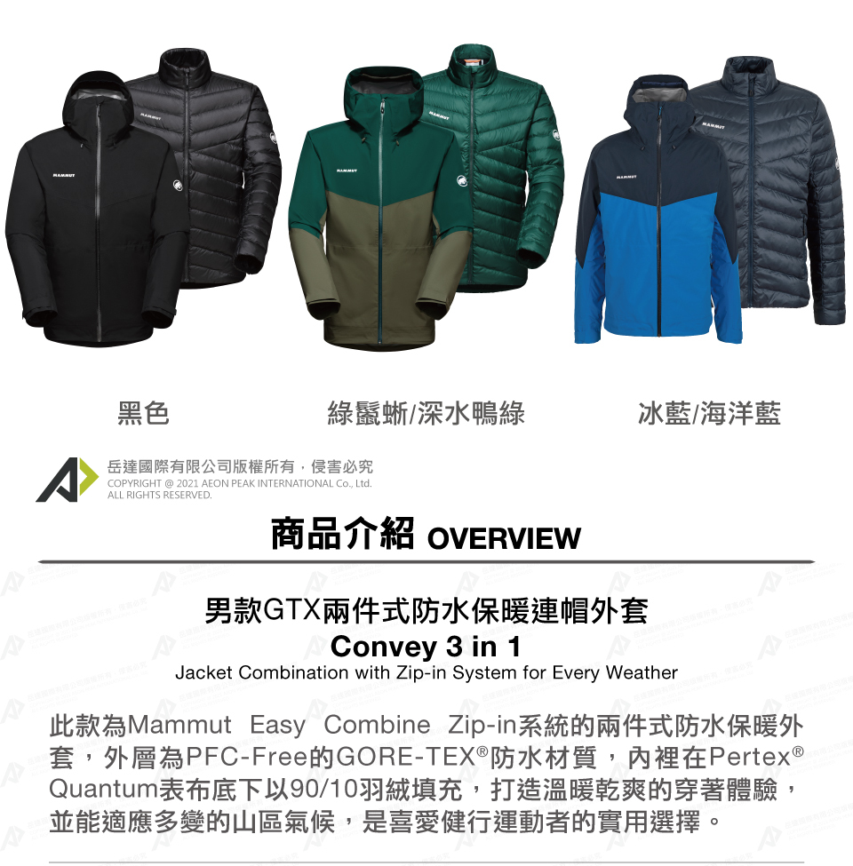 Mammut 長毛象 男 Convey 3 in 1 HS Hooded Jacket GTX 兩件式防水保暖外套 #1010-29150-0052 黑色 [HappyOutdoor]