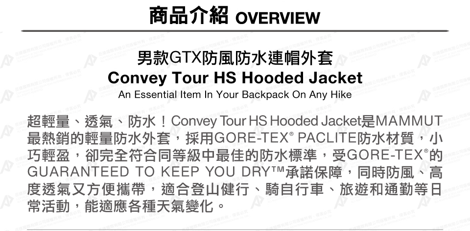 Mammut 長毛象 男款 Convey Tour HS Hooded Jacket AF GTX 防風防水連帽外套