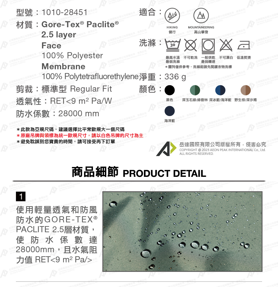 超輕量、透氣、防水!Convey Tour HS Hooded Jacket AF Men是MAMMUT最熱銷的輕量防水外套。 進階採用GORE-TEX® PACLITE防水材質,小巧輕盈,卻完全符合同等級中最佳的防水標準,受GORE-TEX® 的GUARANTEED TO KEEP YOU DRY™ 承諾保障,同時防風、高度透氣、方便攜帶,適合登山健行,以及騎自行車、旅遊、通勤等日常活動。