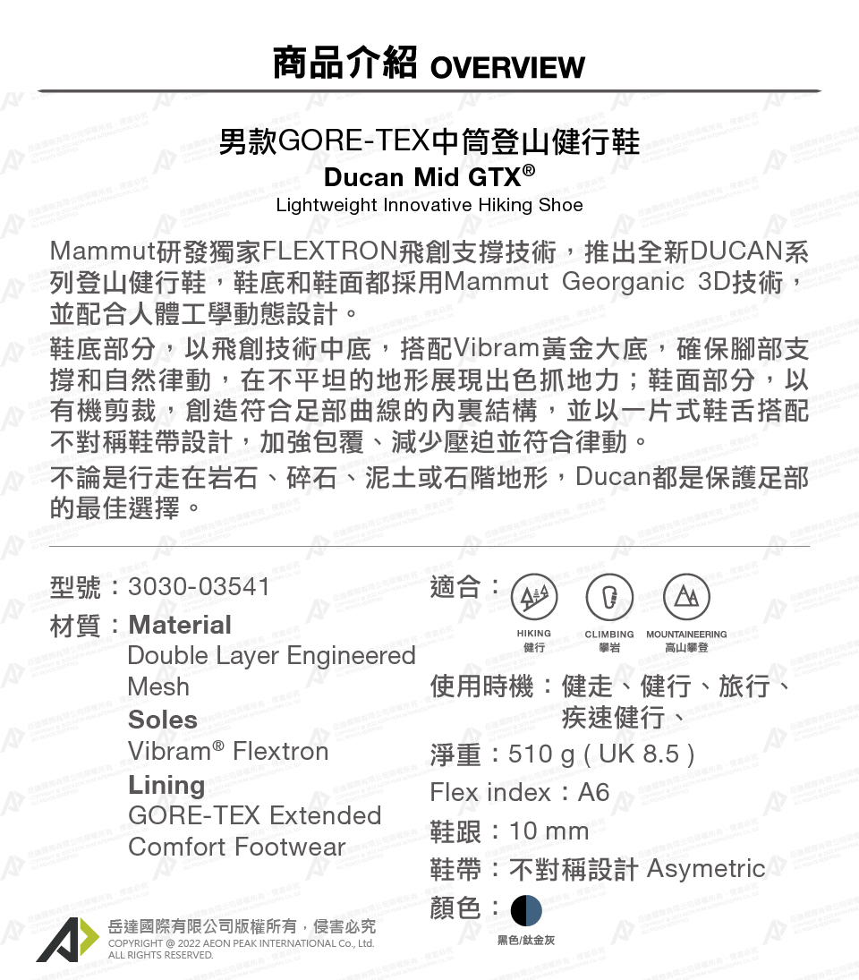 Mammut 長毛象 Ducan Mid GTX 男款 中筒登山健行鞋 #3030-03541