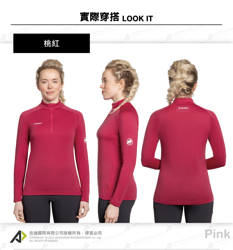 Mammut 長毛象 Performance Thermal Zip LS AF 女款 輕量立領拉鍊長袖排汗衣 #1016-00101-6085 桃紅