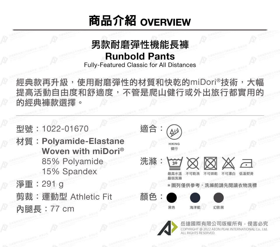 Mammut 長毛象 Runbold Pants M 男款 耐磨彈性機能長褲 #1022-01670-00150 幻影黑