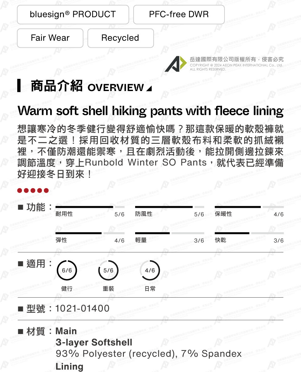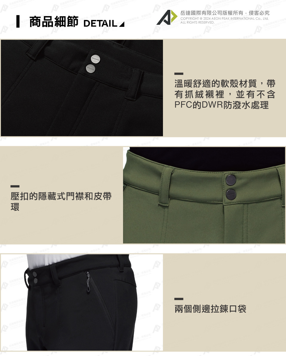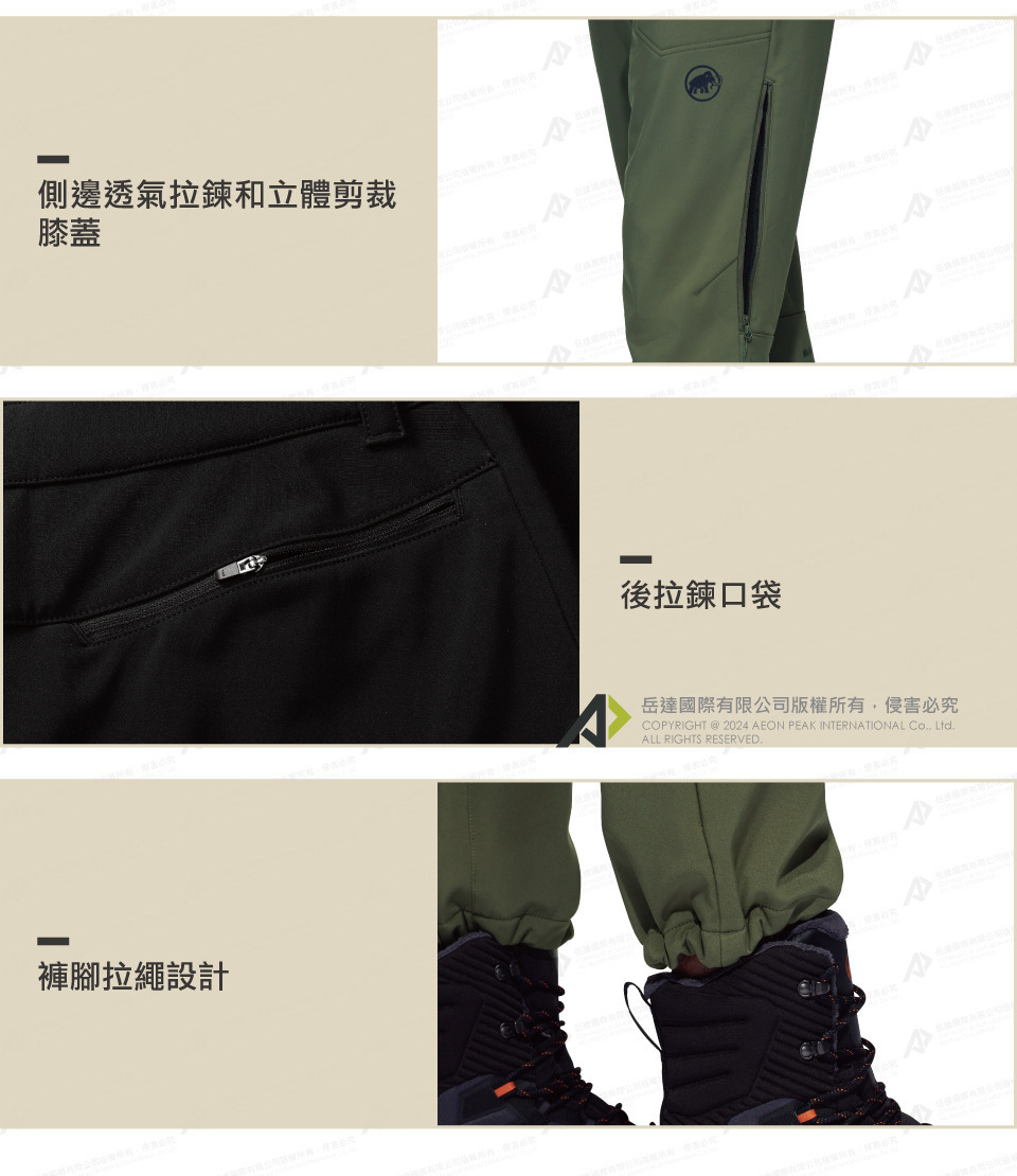 - 側邊透氣拉鍊和立體剪裁膝蓋