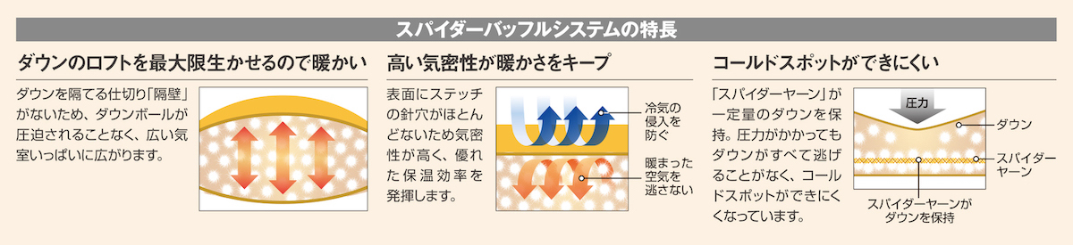 專利無隔間結構,完整蓬鬆羽絨層,提高蓬鬆空間效率,可減少睡袋冷點