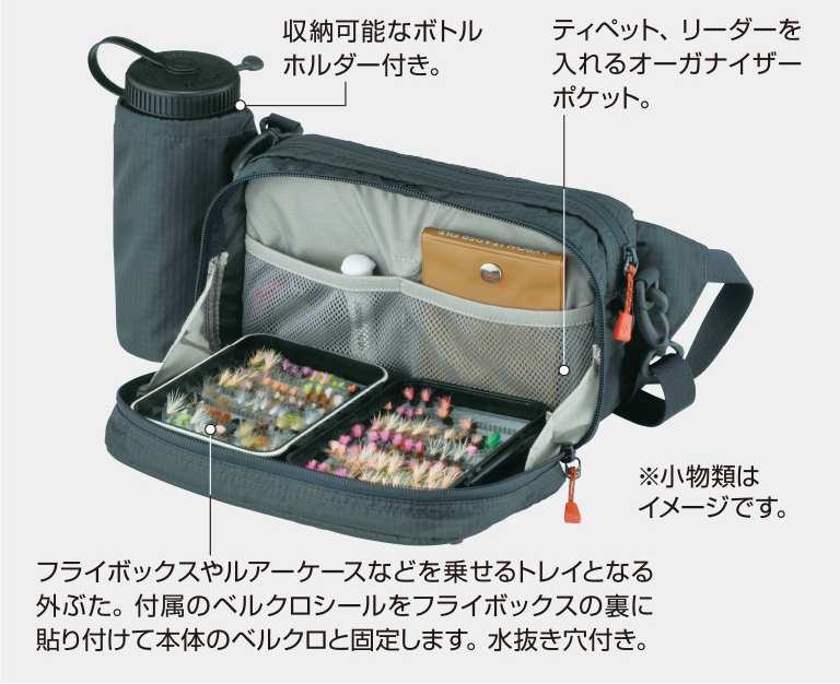想去釣魚嗎? TACKLE POUCH 是一款腰包,設計方便整理您的釣具