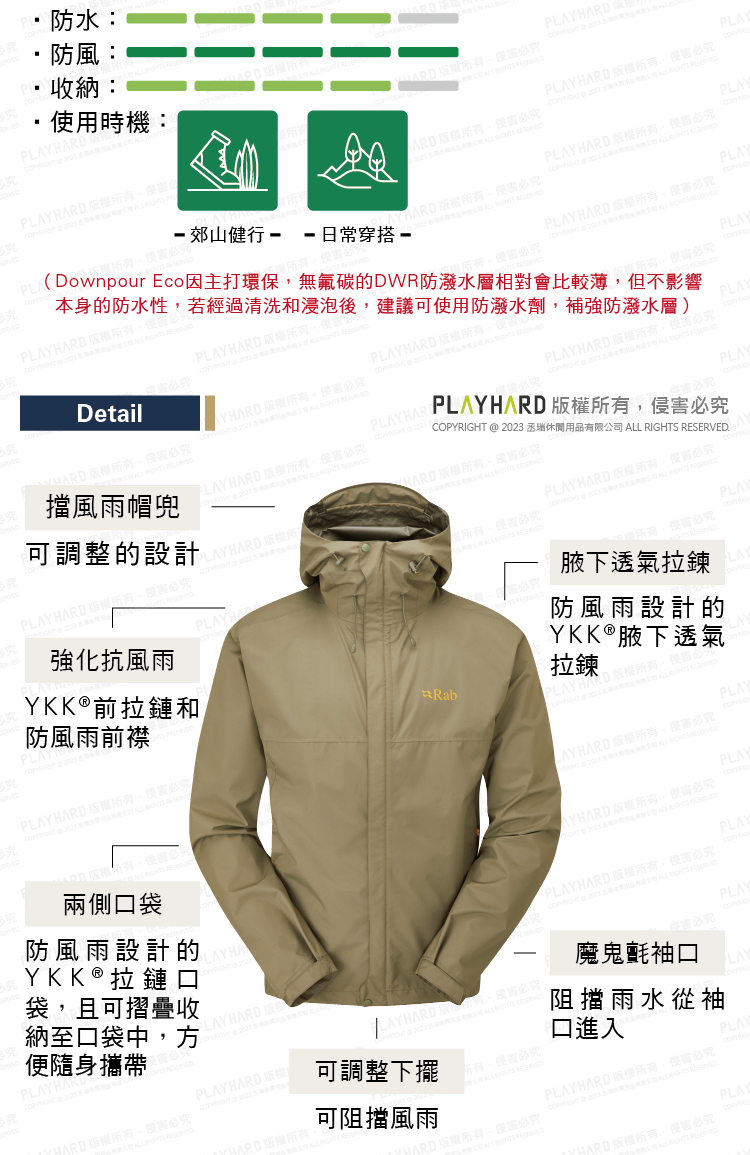 Rab Men's Downpour Eco Waterproof Jacket 男款輕量防風防水連帽外套