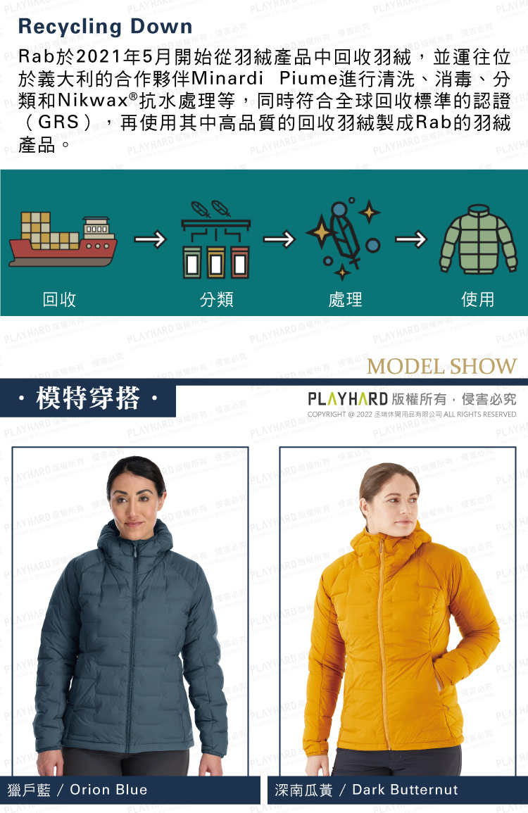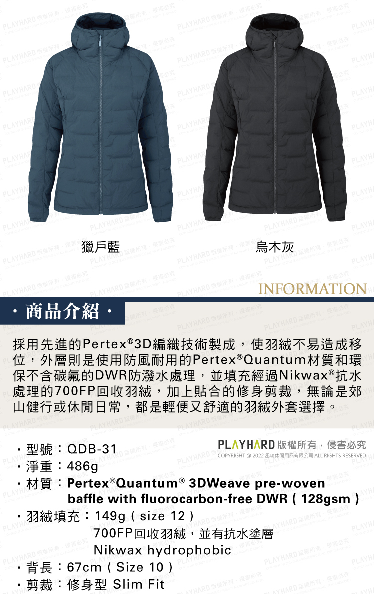 填充了 700FP PURE 再生羽絨,並採用先進的 Pertex®3D 編織技術製成,具有出色的抗風性、重量輕,提供最大限度地延展性。