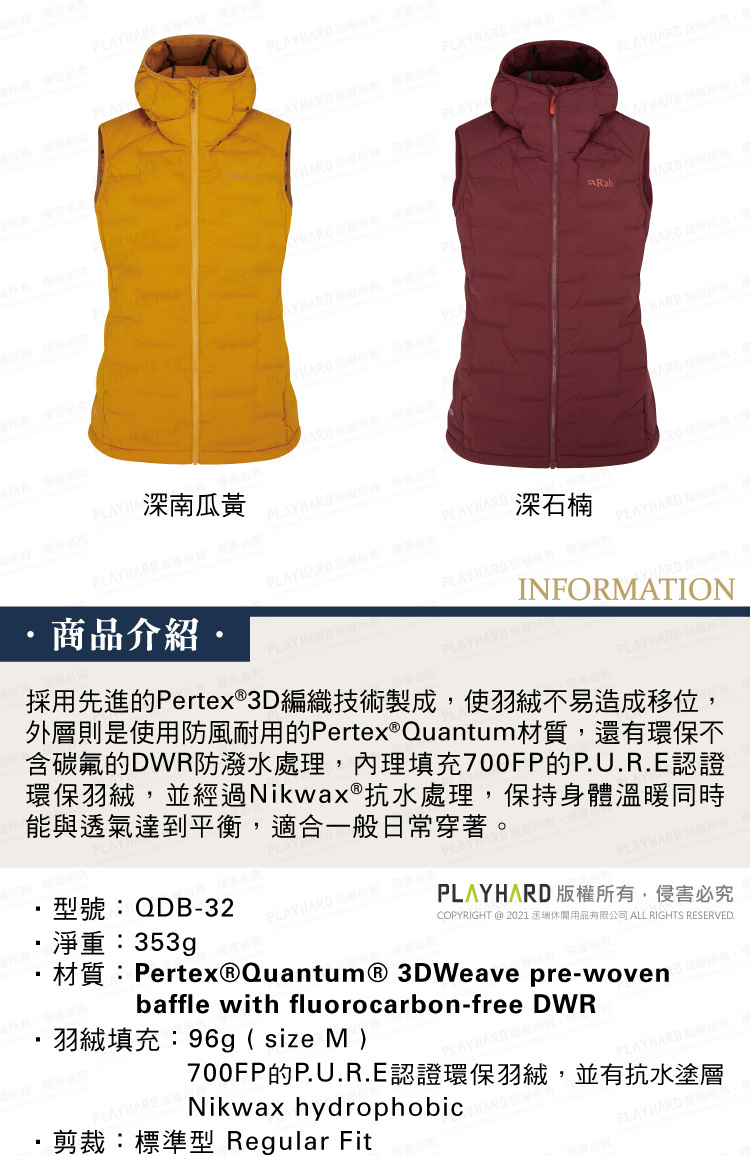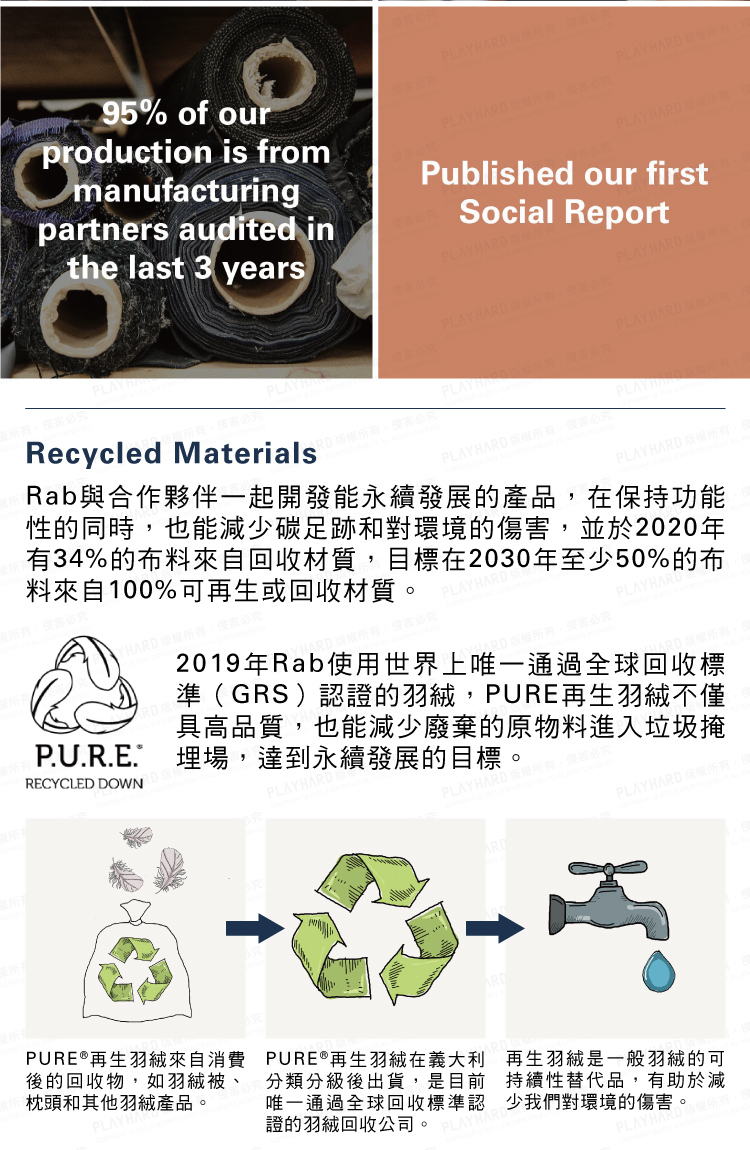 填充了 700FP PURE 再生羽絨,並採用先進的 Pertex®3D 編織技術製成,具有出色的抗風性、重量輕。